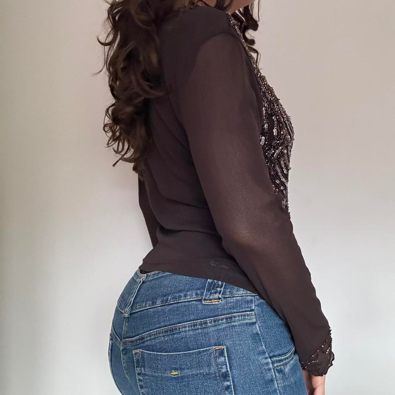 ⭐️ 00s brown square neck beaded and sequins double mesh top