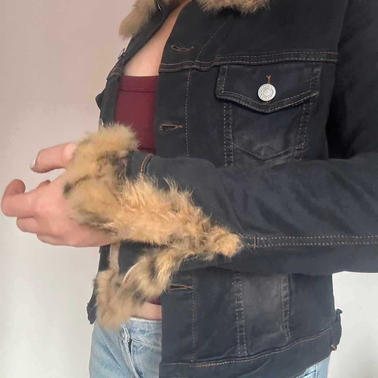 ⭐️ vintage dark navy denim jacket with leopard print fur collar and cuffs