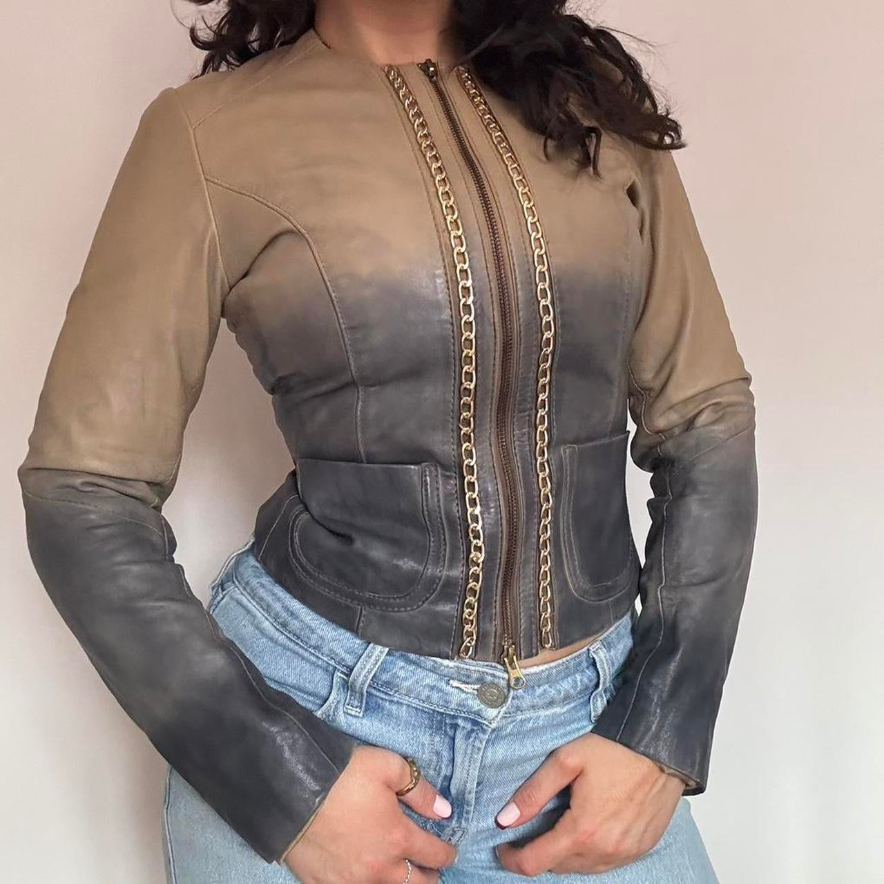 ⭐️ vintage tans and grey genuine leather jacket
