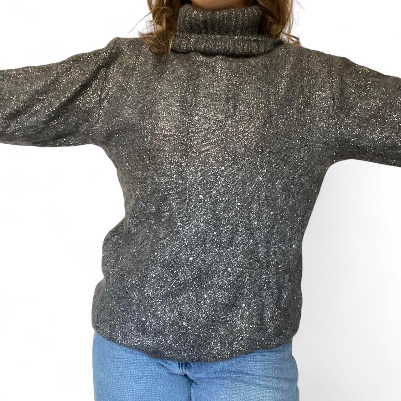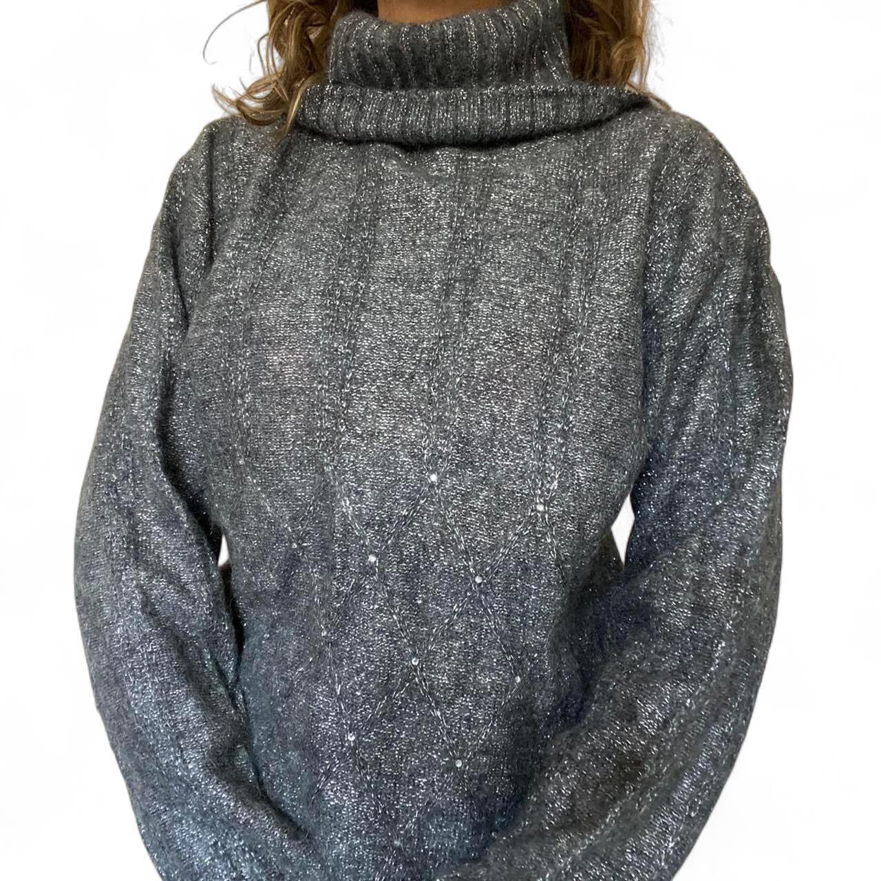 vintage roll neck high neck grey silver metallic knit jumper